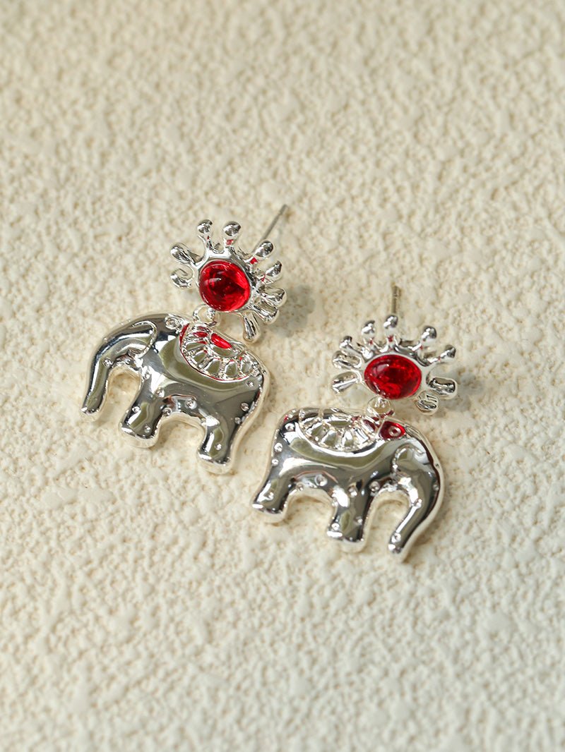 “Born to Shine” Garnet Elephant Earrings - Silver - floysun