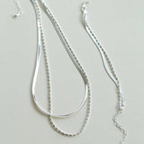 A bold snake chain paired with a delicate beaded strand, creating instant depth and texture.