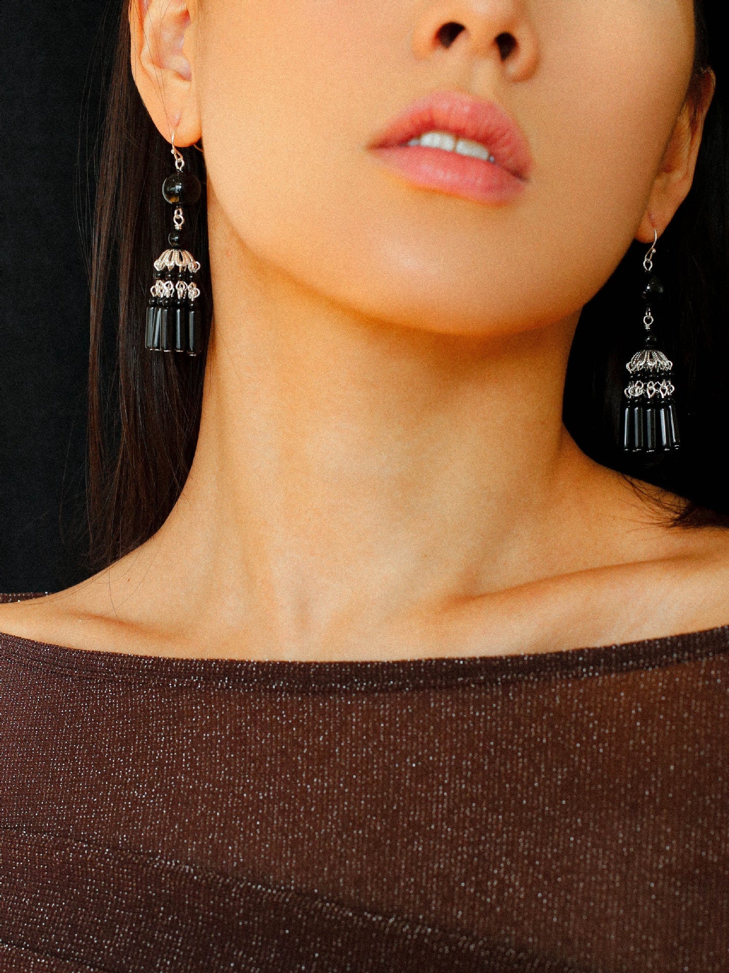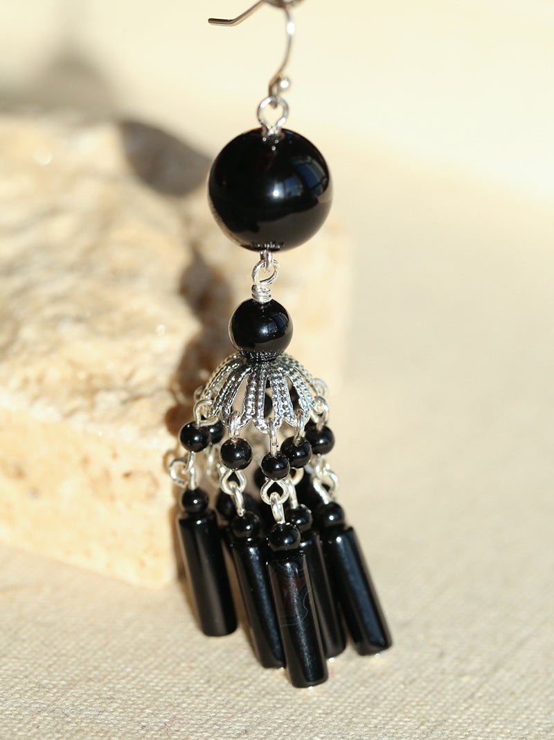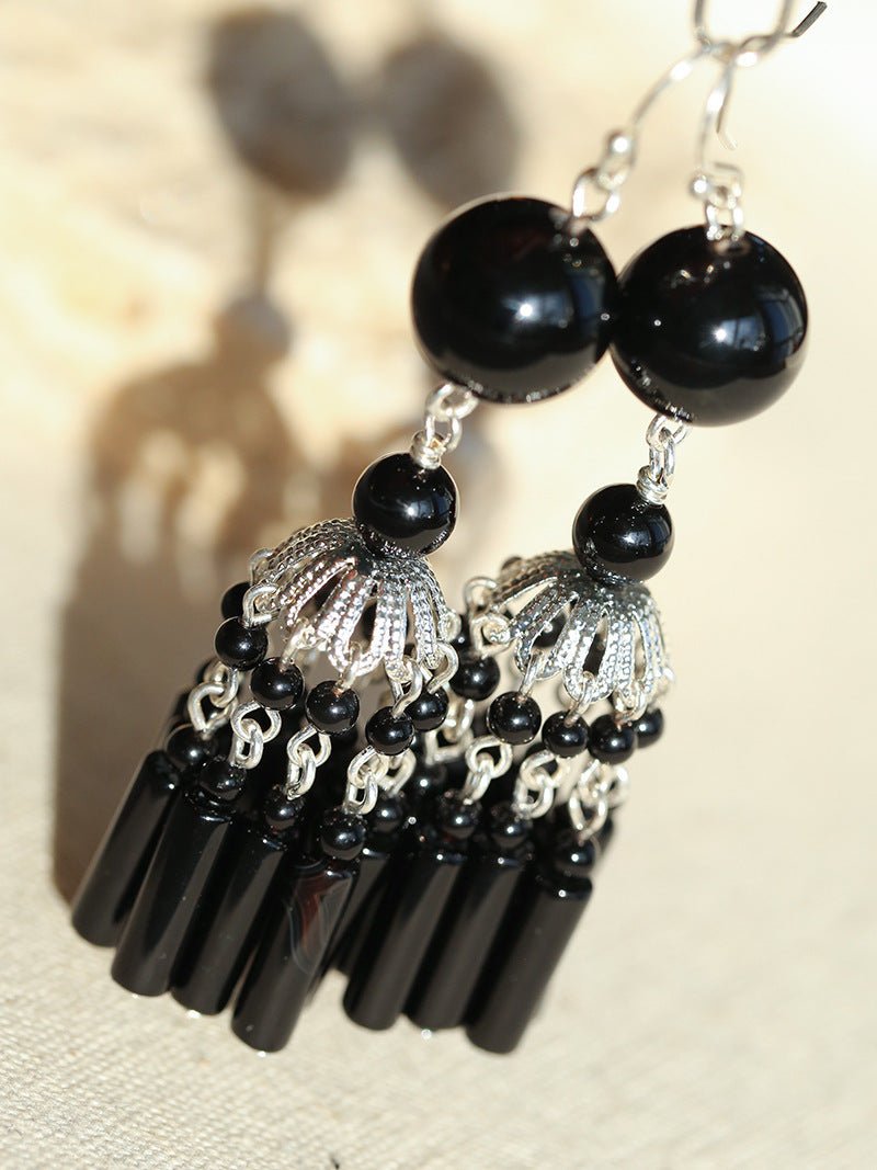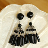 Ethnic Agate Tassel Earrings Traditional Meets Modern -Black Onyx