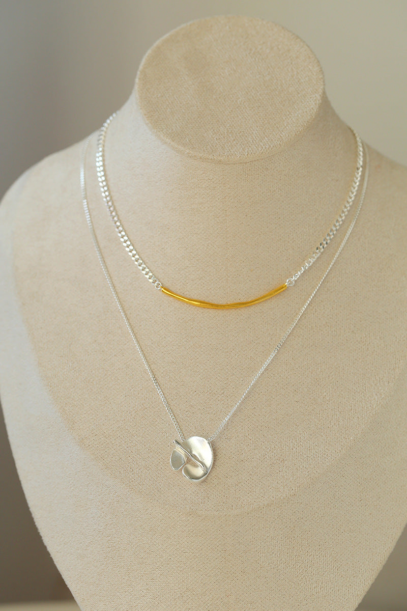 Geometric Layered Necklace with Sculptural Pendant – Mixed Metal
