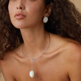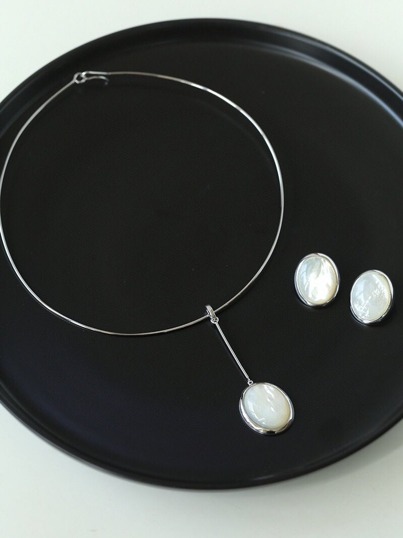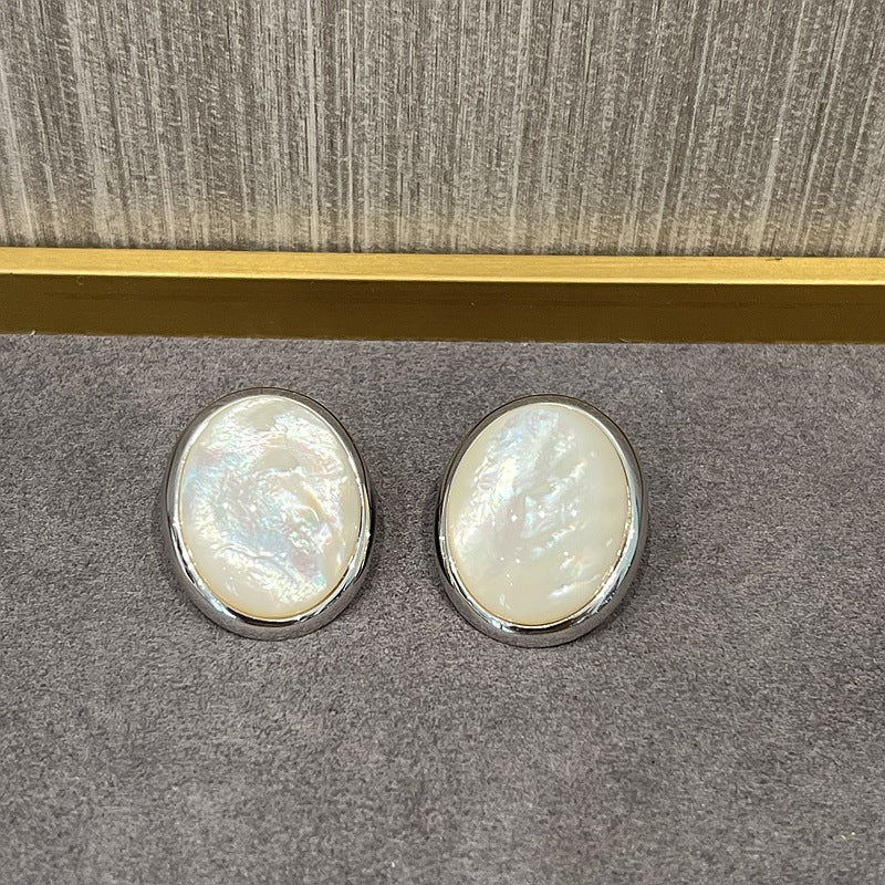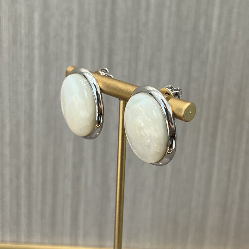 Oval Sterling Silver Gemstone Stud Earrings - White Mother-of-Pearl