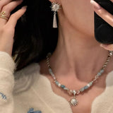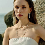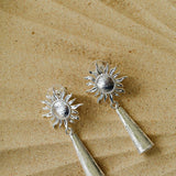 Sunrise Gleam – Brushed Metal Tassel Earrings -Silver