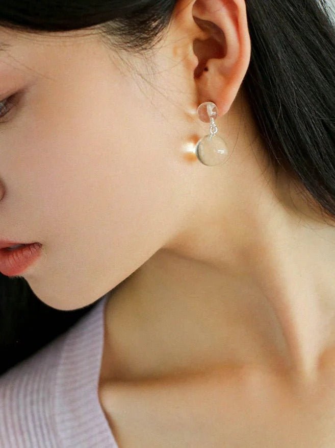 White Crystal Double Ball Earrings