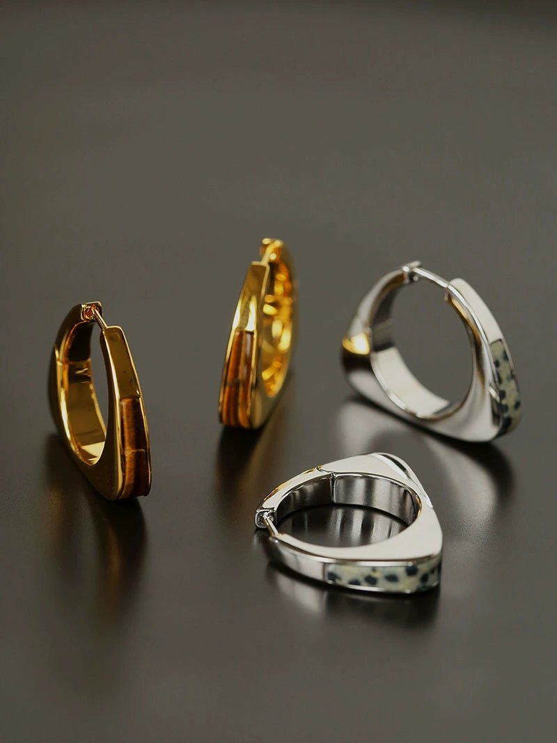 Vintage Leopard-Pattern Tiger’s Eye Hoop Earrings