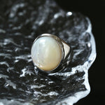 Sterling Silver Round White Mother - of - Pearl Statement Ring - floysun