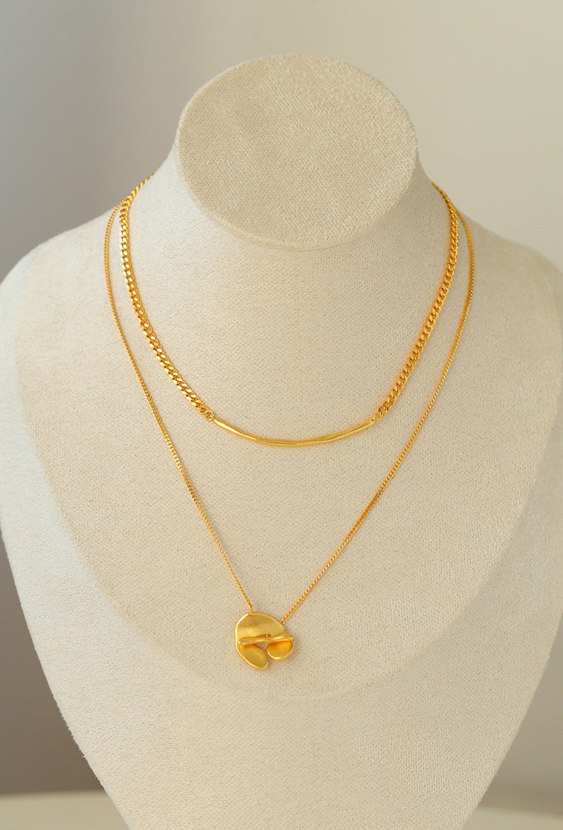 Geometric Layered Necklace with Sculptural Pendant – 18K Gold Vermeil