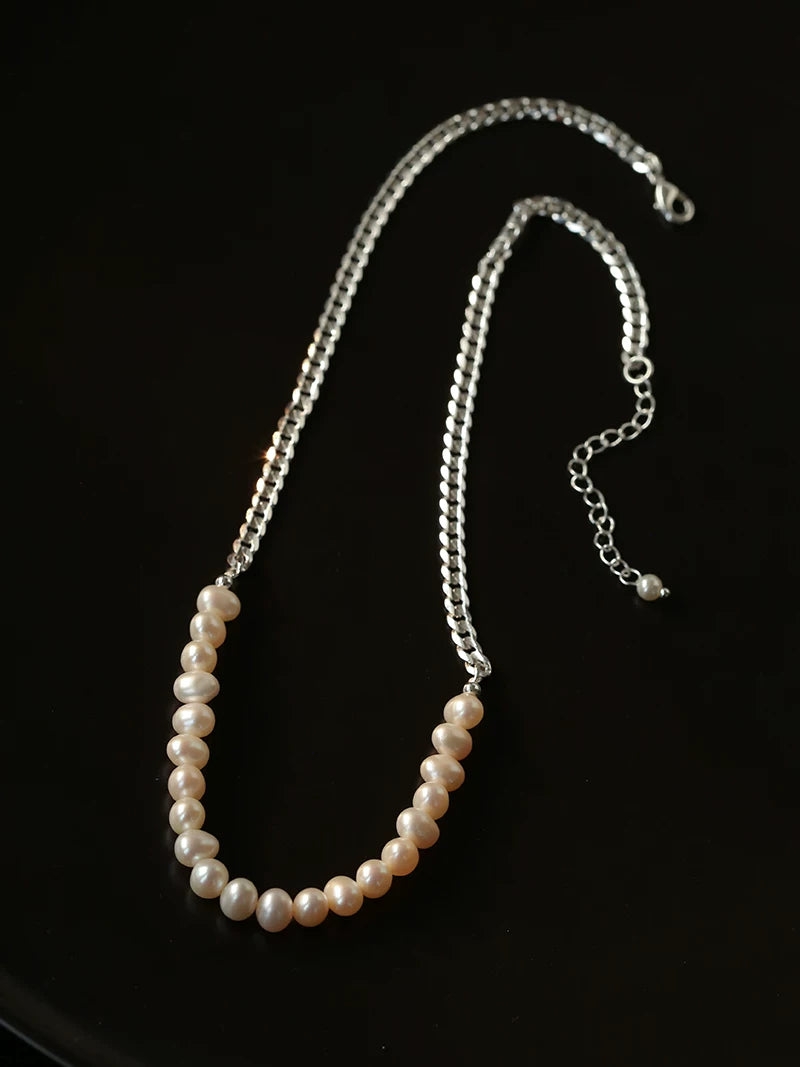 Minimalist Baroque Pearl Silver Chain Necklace - Style A