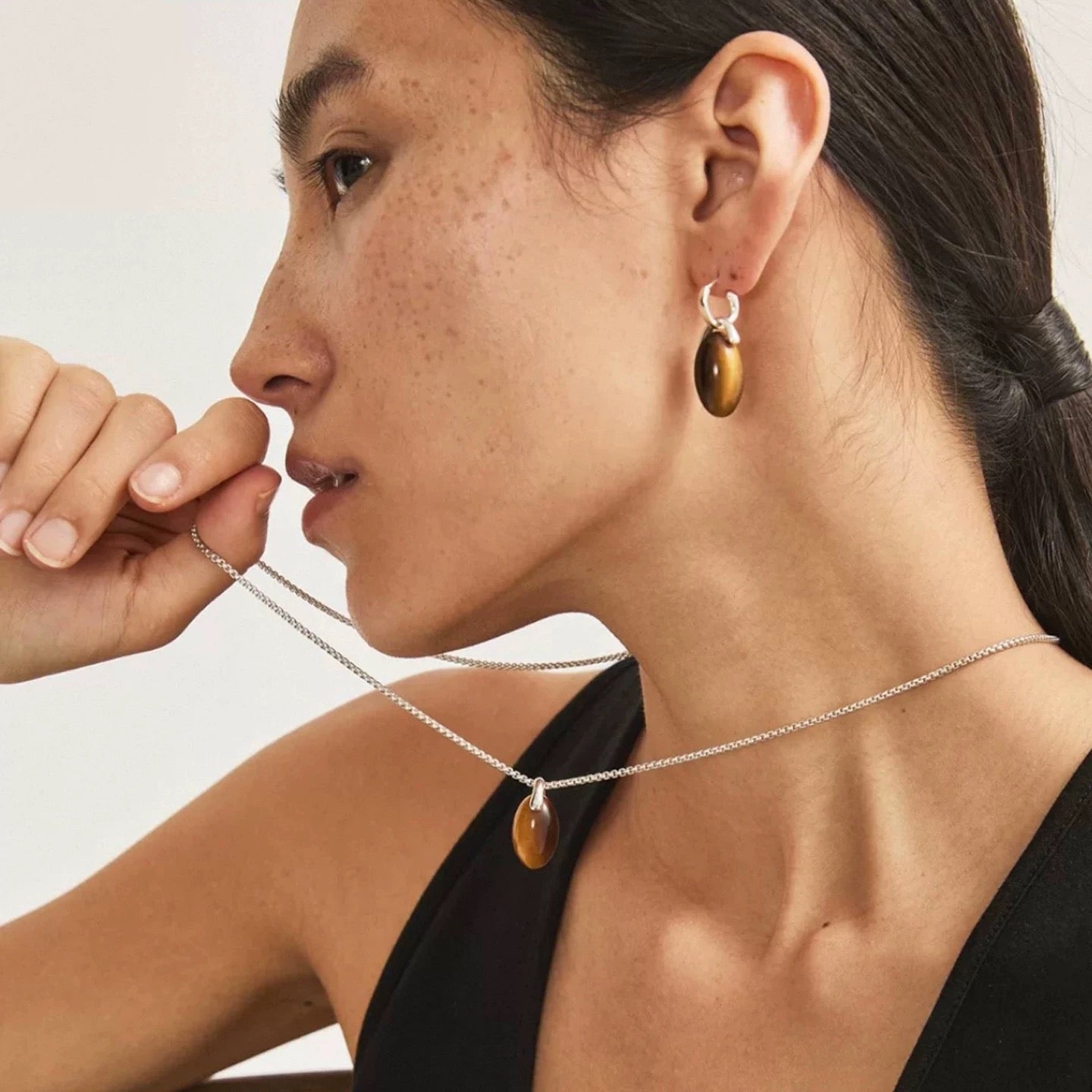 A sleek single-bead necklace that captures the quiet strength of natural tiger’s eye. The golden-brown crystal reflects light with subtle radiance, adding warmth and confidence to any outfit. The adjustable chain makes it ideal for layering or wearing solo, offering a timeless Maillard-style sophistication.