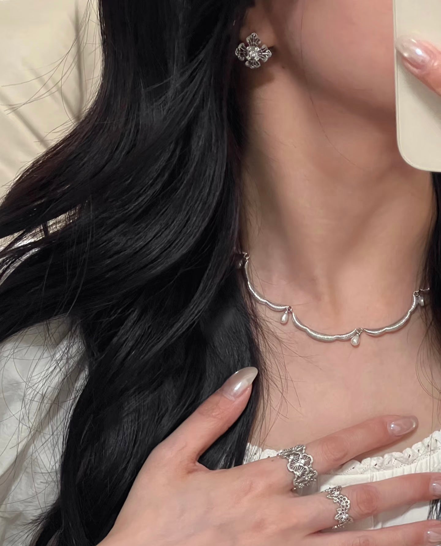 Inspired by Mouhooland’s signature lace floral aesthetic, this delicate choker necklace features a refined lace-inspired flower motif paired with a fine sterling silver chain and a natural pearl.