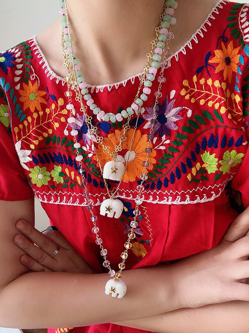 Red cord adds a meaningful accent, symbolizing warmth and good wishes while providing flexible length for different outfits.Finished with 18K gold-plated brass details, the necklace balances elegance and character—perfect for spring and summer styling.