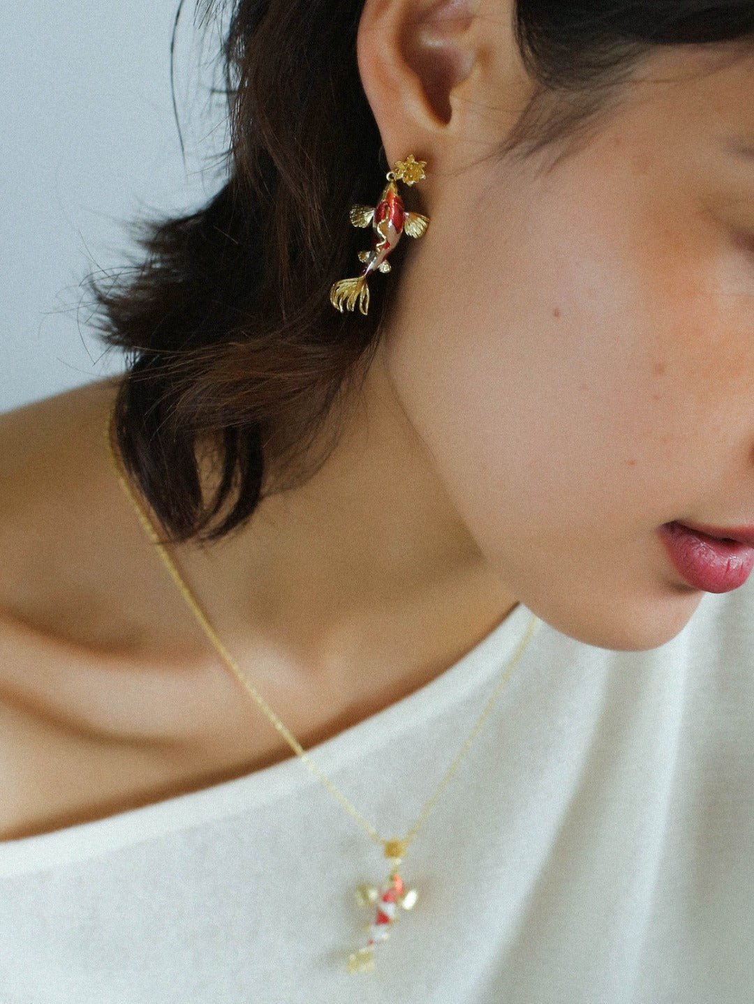 Enamel Koi Fish Pendant Earrings - floysun