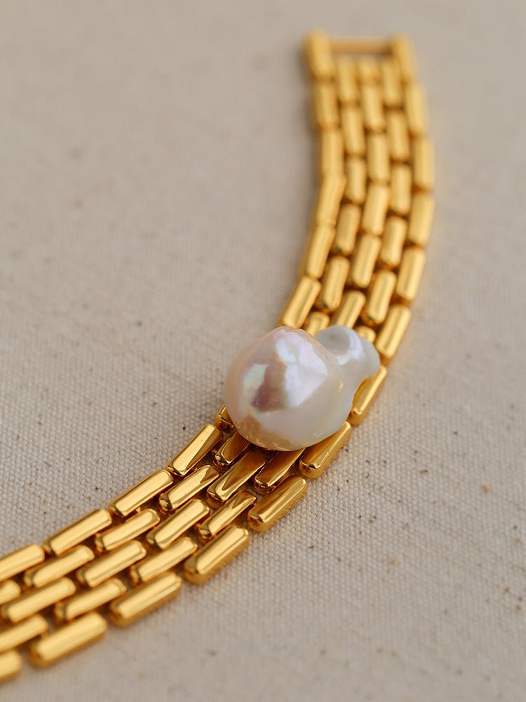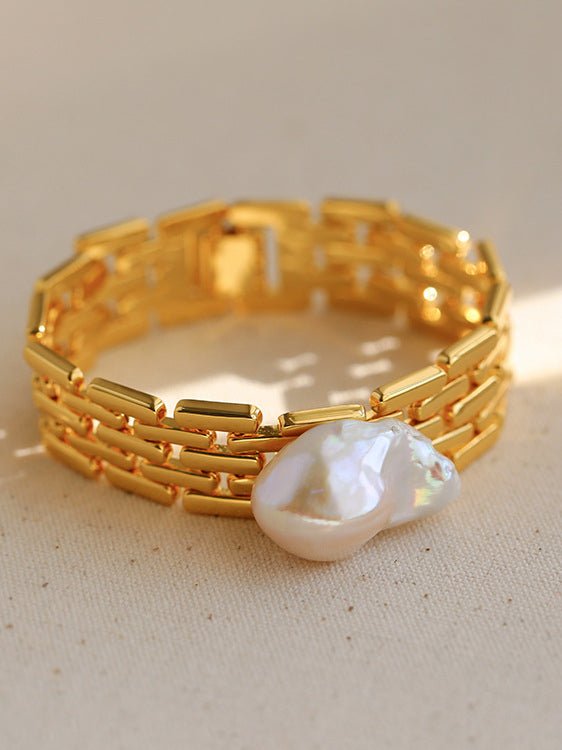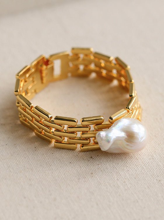 Vintage Wide Chain Baroque Pearl Bracelet - floysun