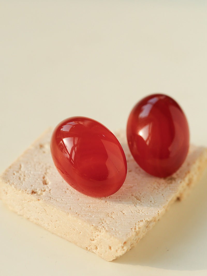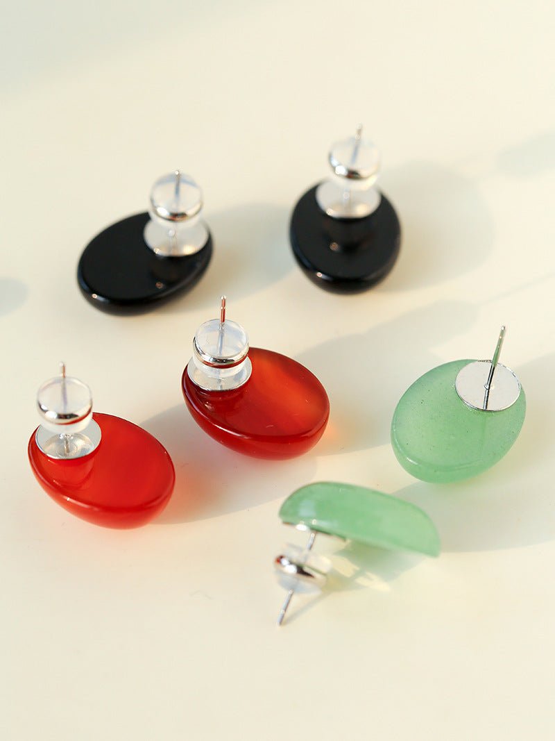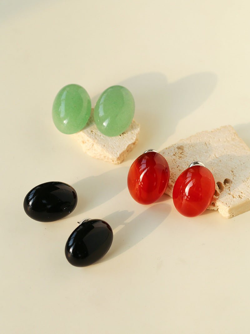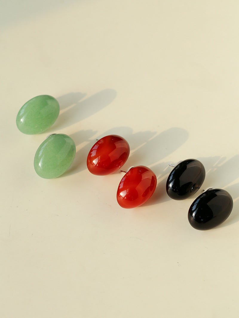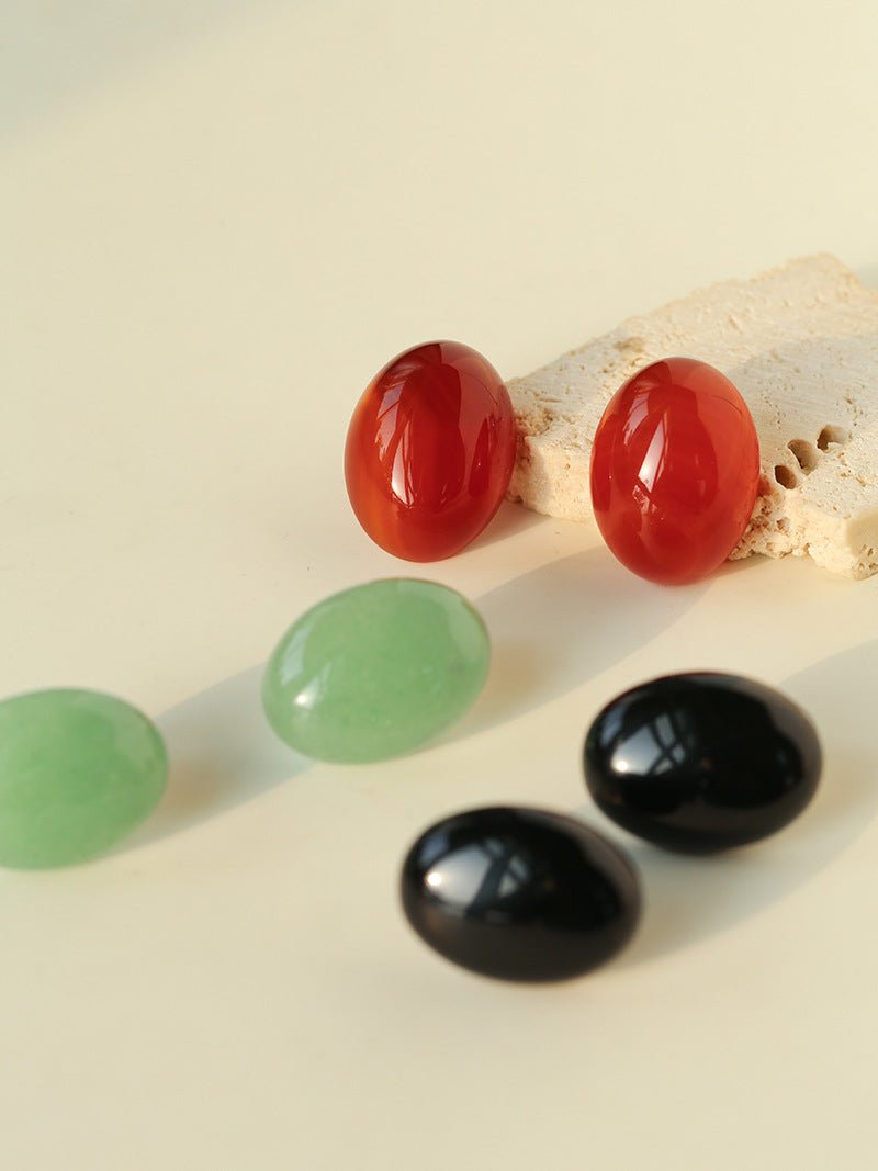 Effortless elegance meets versatile style — these oval agate stud earrings are the ultimate “lazy luxe” accessory. Available in Red agate, black onyx, and green aventurine, each stone is carefully polished into a smooth cabochon, allowing the natural beauty and color to shine without unnecessary embellishments.