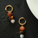 Primeval Forest Nature's Wood Bead Pearl Drop Earring