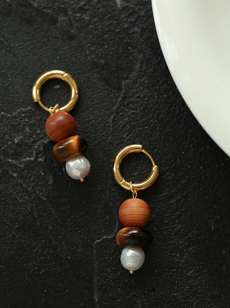 Primeval Forest Nature's Wood Bead Pearl Drop Earring