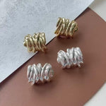 Introducing our captivating geometric twisted metal earrings that blend modern design with timeless elegance. These earrings are carefully crafted with stylish metal elements twisted into geometric shapes to create a striking, sophisticated aesthetic. The interplay of lines and curves adds depth and dimension to these earrings, while their lightweight construction ensures all-day comfort.