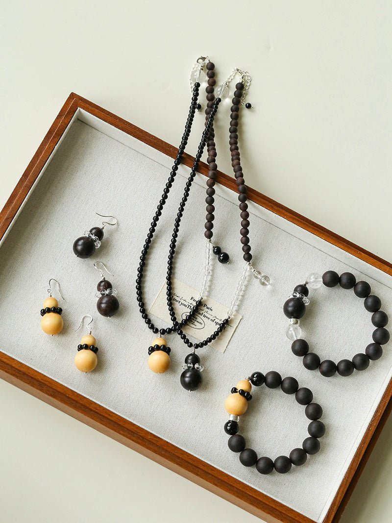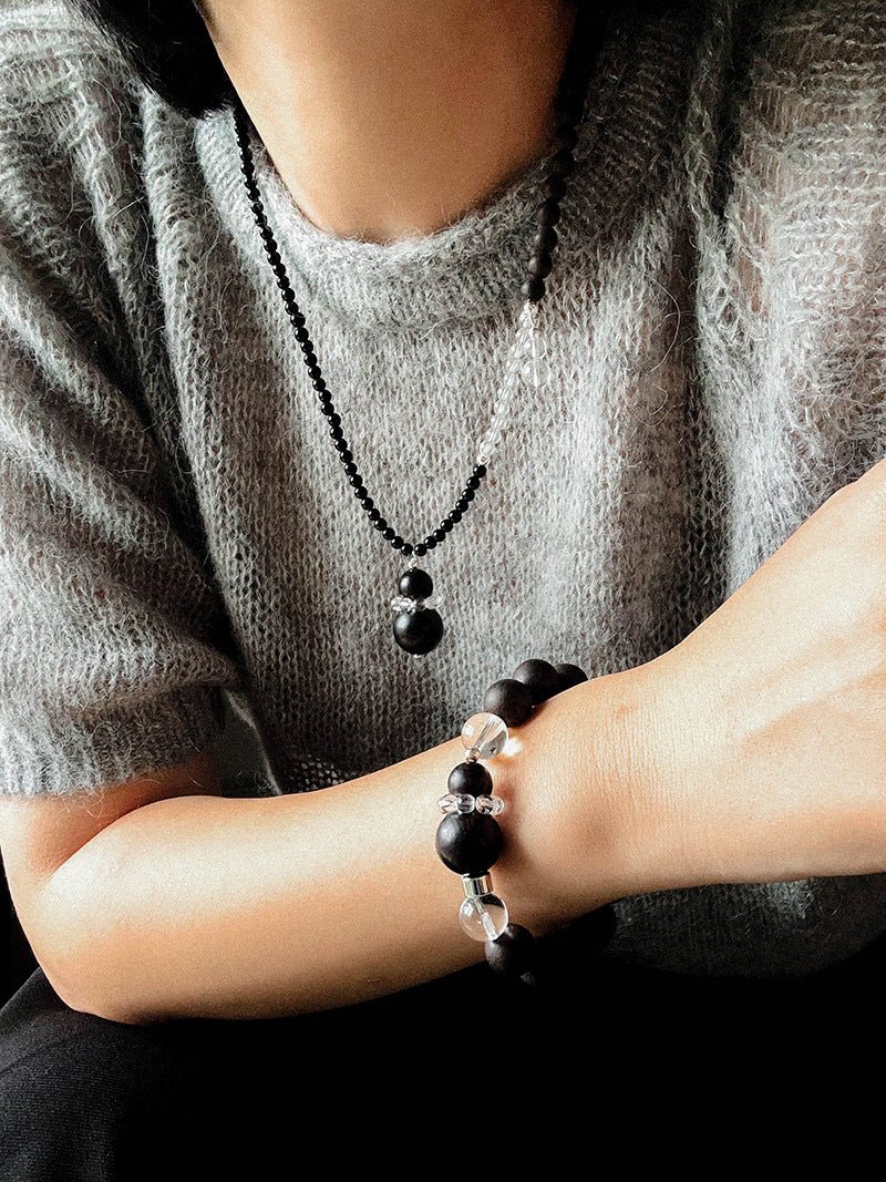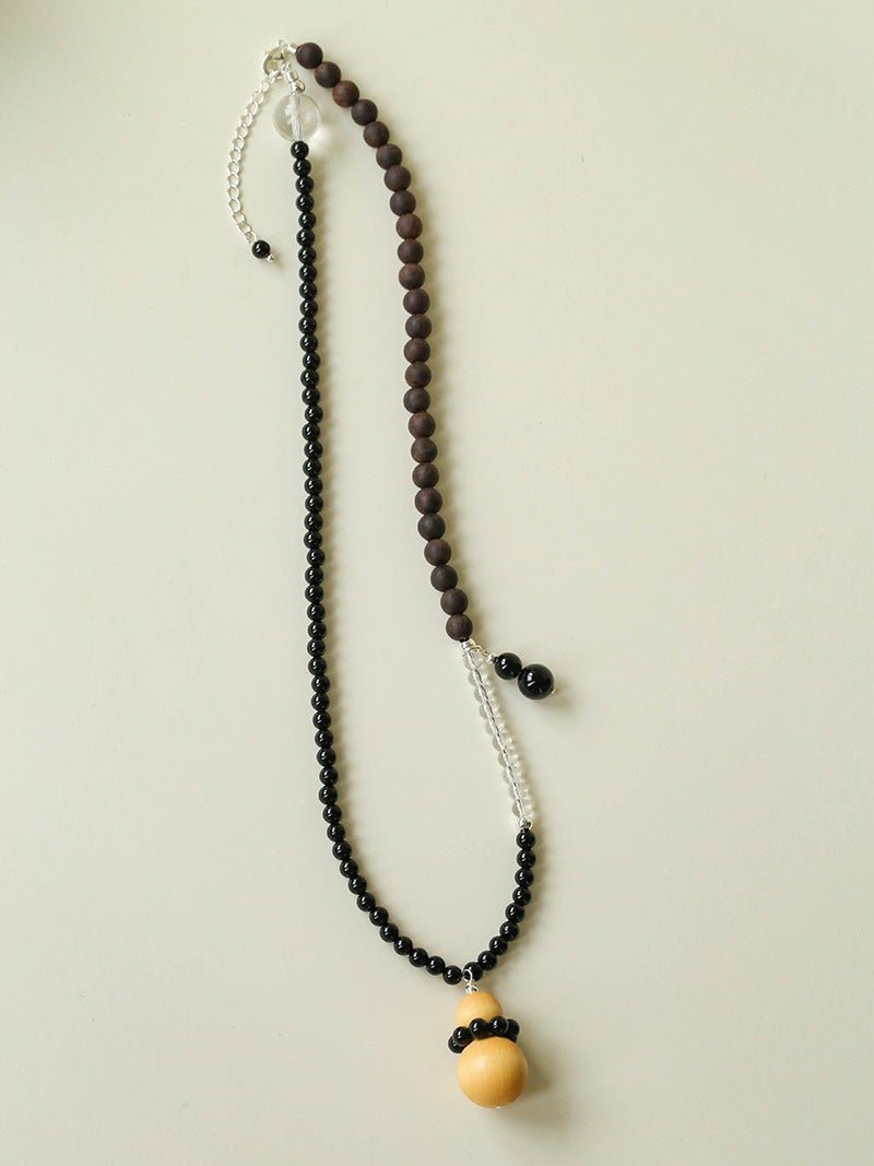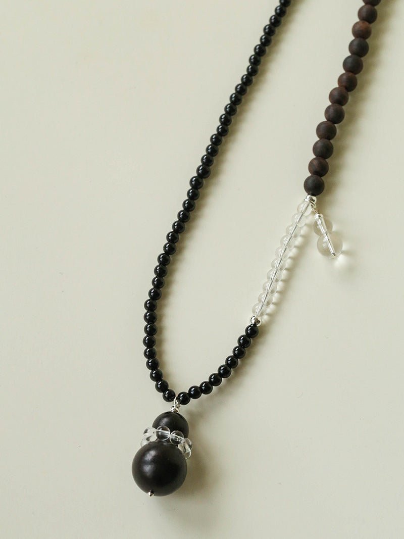 Crafted with ebony and boxwood, each gourd pendant embodies its unique charm — ebony for a cool, elegant aura, and boxwood for a gentle warmth with fine grain. Paired with black agate and clear quartz, the design symbolizes balance and protection, believed to ward off negativity and bring clarity of mind.