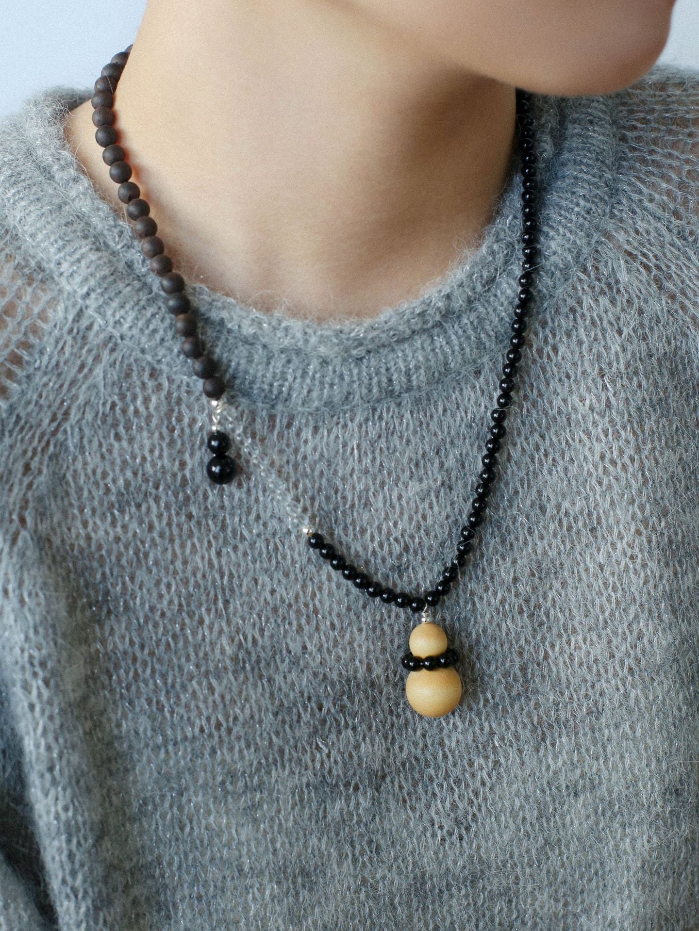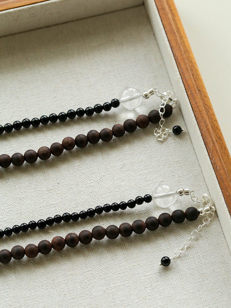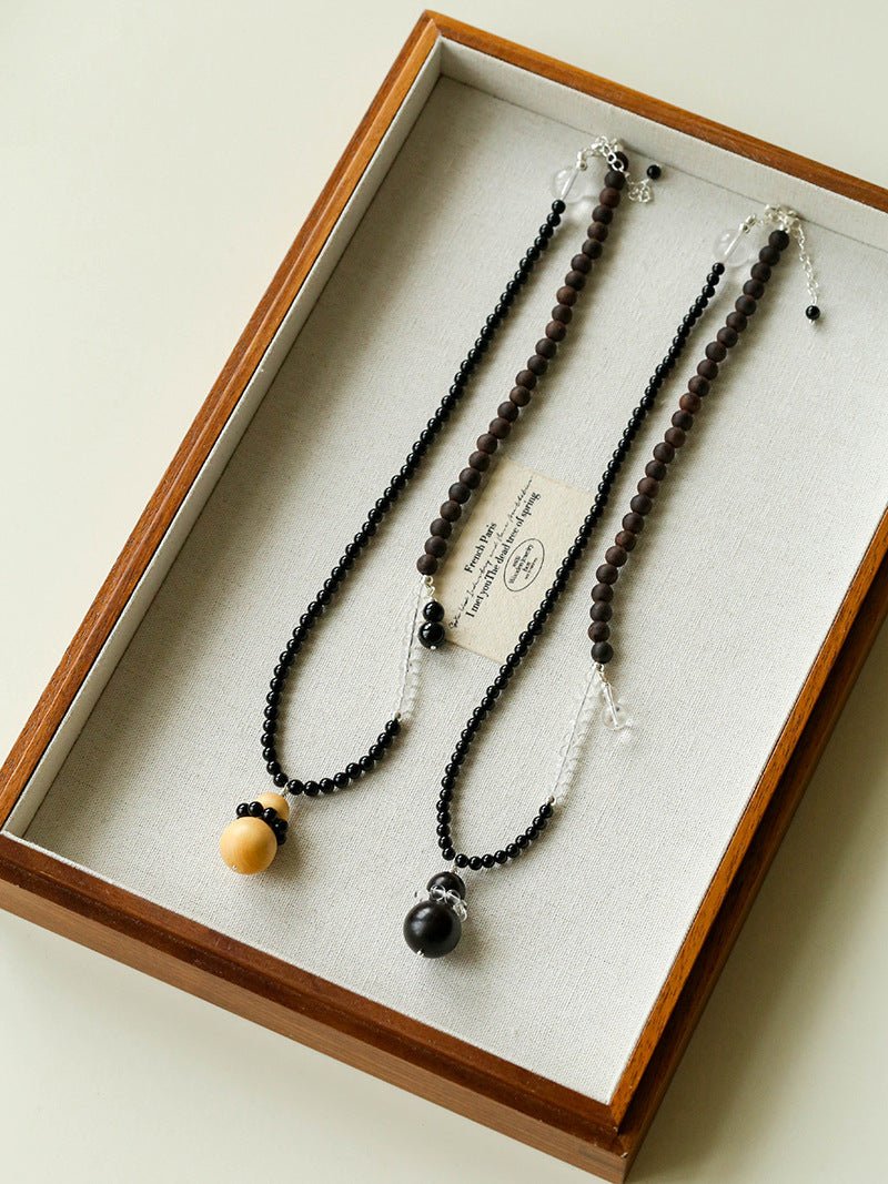 Crafted with ebony and boxwood, each gourd pendant embodies its unique charm — ebony for a cool, elegant aura, and boxwood for a gentle warmth with fine grain. Paired with black agate and clear quartz, the design symbolizes balance and protection, believed to ward off negativity and bring clarity of mind.
