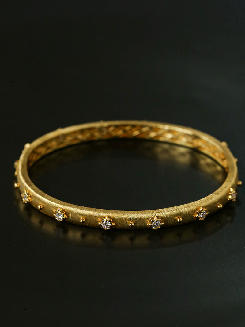 Star - Embellished Wide Cuff Bracelet – Brushed Gold with Gold Stars - floysun