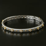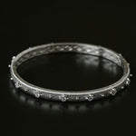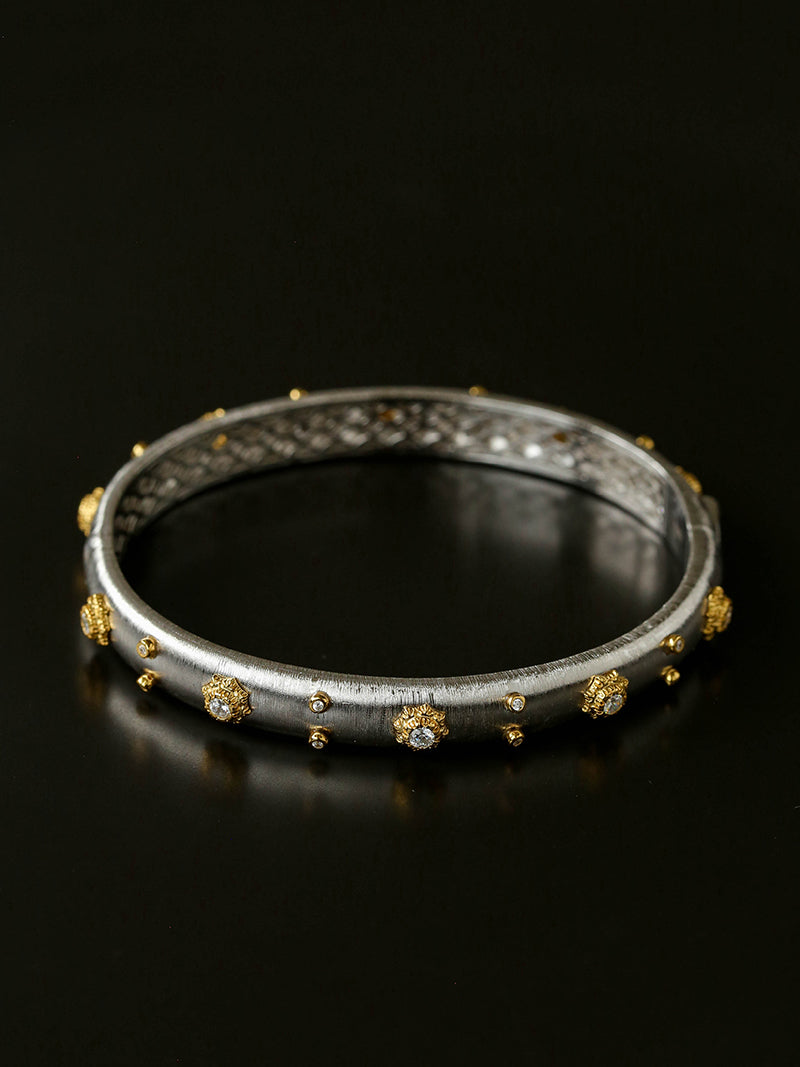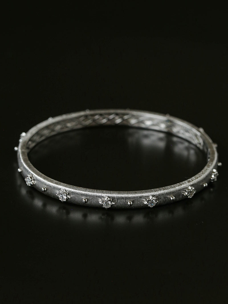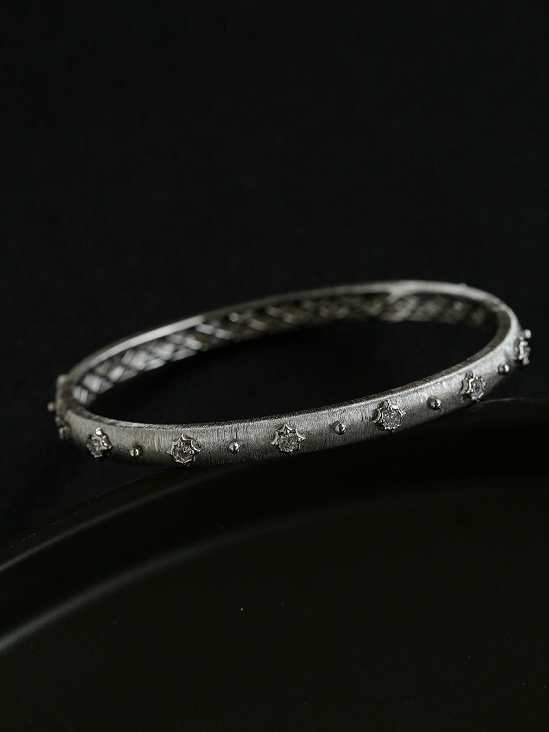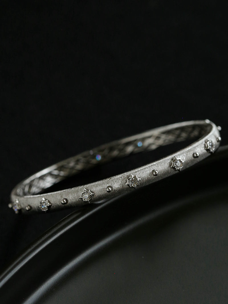 Star - Embellished Wide Cuff Bracelet – Brushed Silver with Silver Stars - floysun
