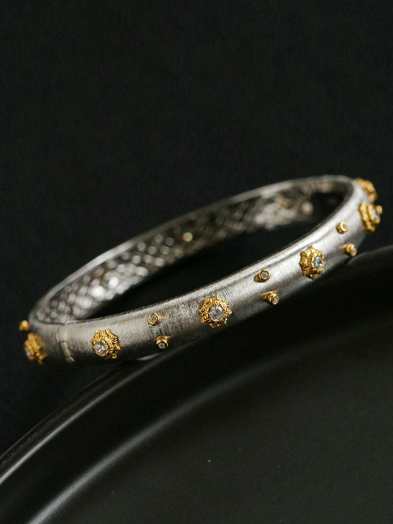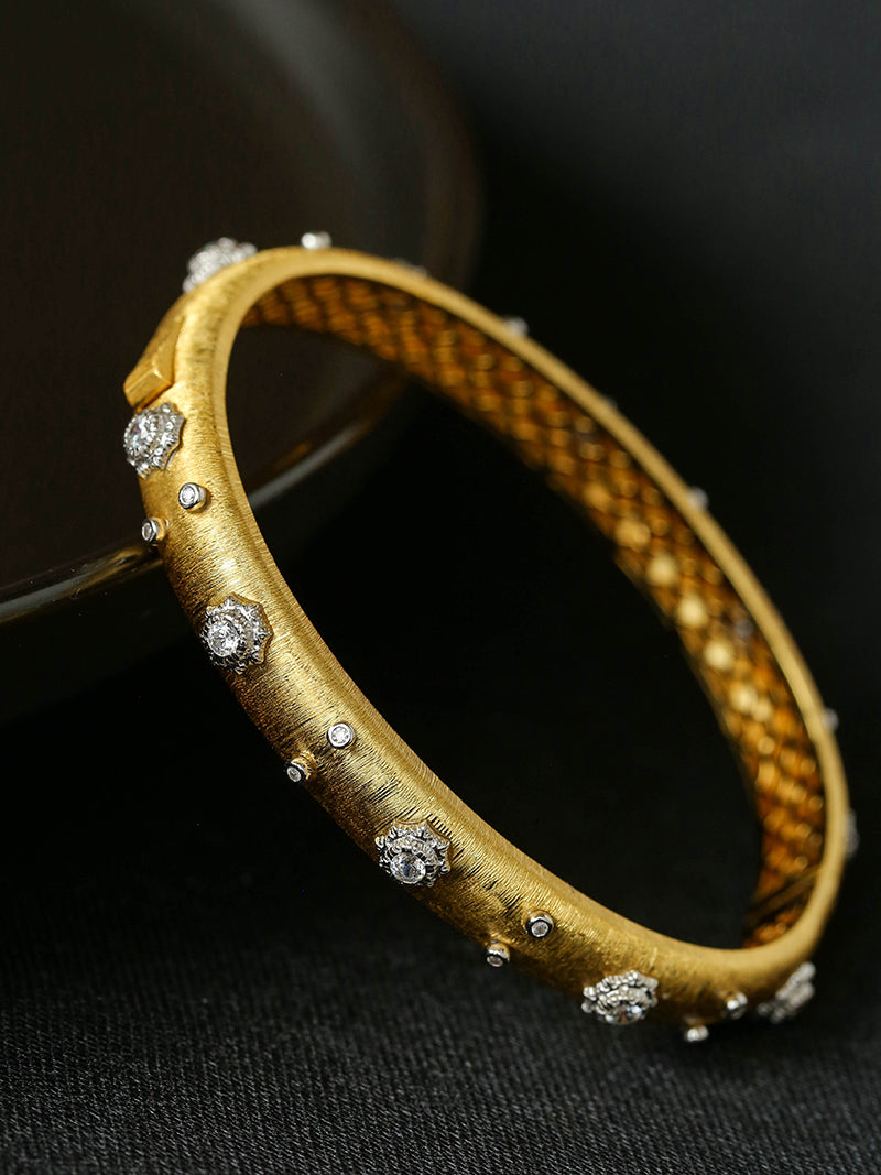 Snowflake - Embellished Wide Cuff Bracelet – Brushed Gold - floysun