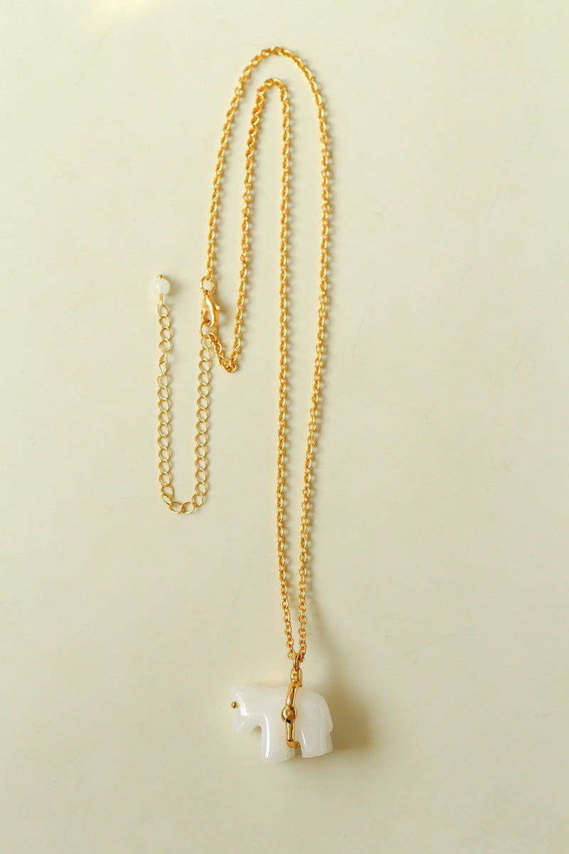 Bohemian Leaping Horse Collection White Jade Carved Horse Pendant Chian Necklace