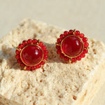 Minimalist Natural White Crystal Pearl Stud Earrings Black & Red Agate Variants - floysun