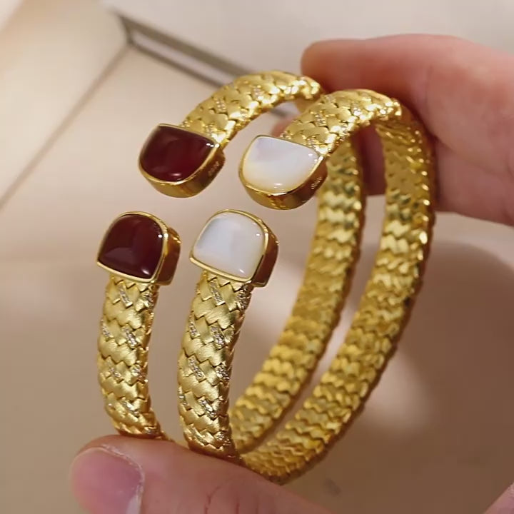 S925 Gold-Plated Woven Open Bangle