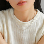 Tiny Silver Beans and Olive Beads Layered Necklace - floysun