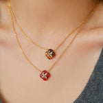 The clover petals are crafted from natural stones—Tiger Eye, Red Agate, or Mother-of-Pearl—each bringing its own unique character and meaning. Warm tiger eye offers grounding strength, vibrant red agate adds bold energy, while mother-of-pearl reflects soft, luminous elegance.