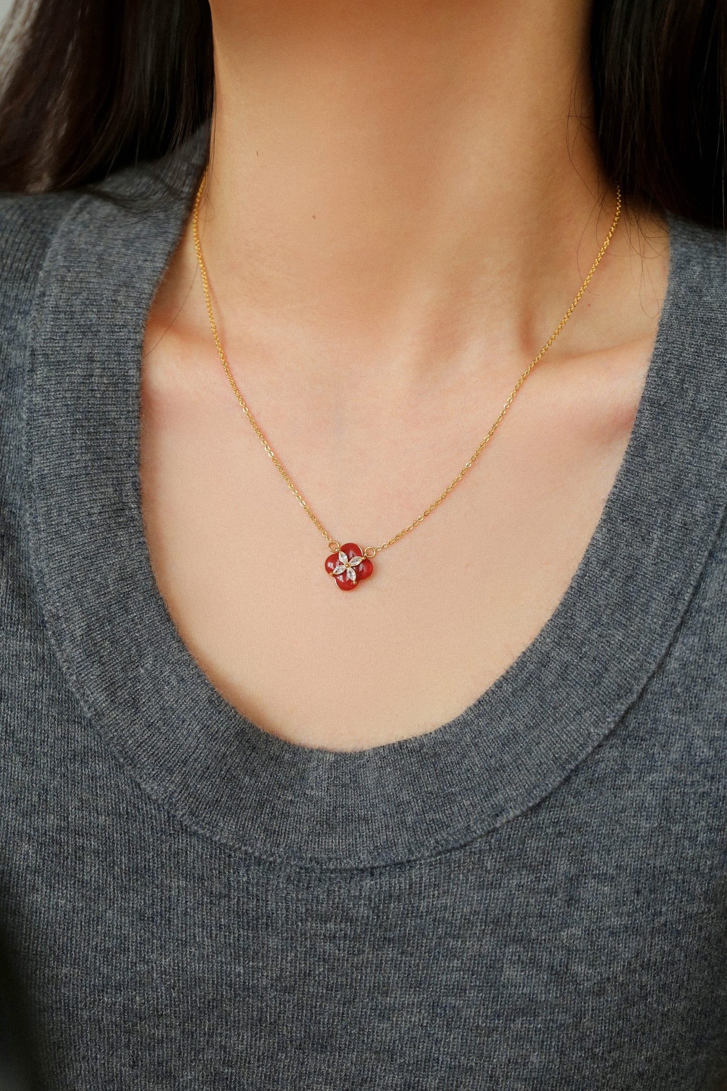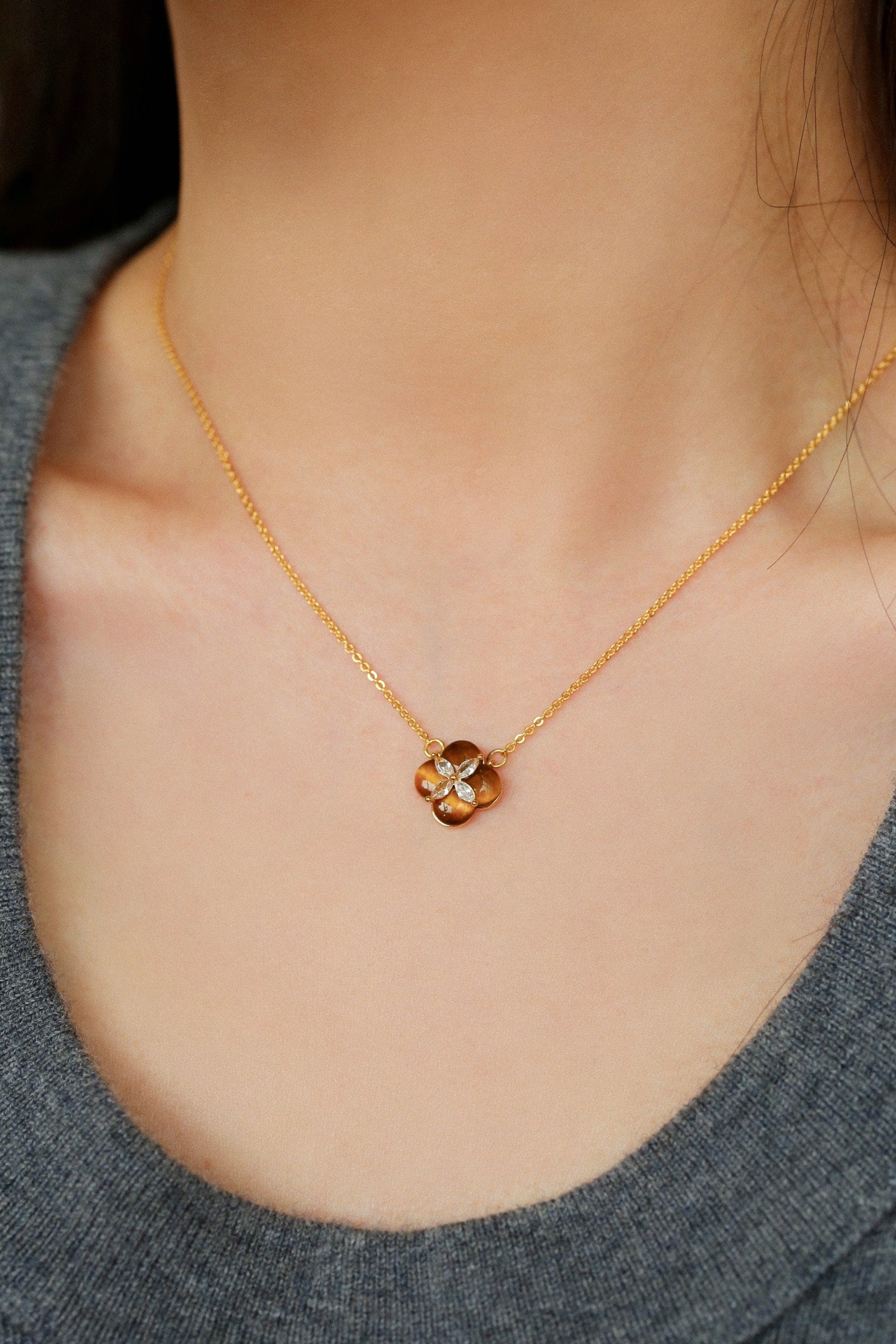 Inspired by the timeless charm of the four-leaf clover, this delicate necklace represents luck, hope, and quiet confidence. At the center sits a sparkling marquise-cut zircon, catching the light beautifully and adding a subtle brilliance to the design.