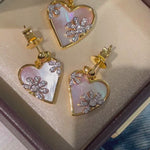 Mother of Pearl Heart Earrings Set with Lab Diamond Daisy Accent