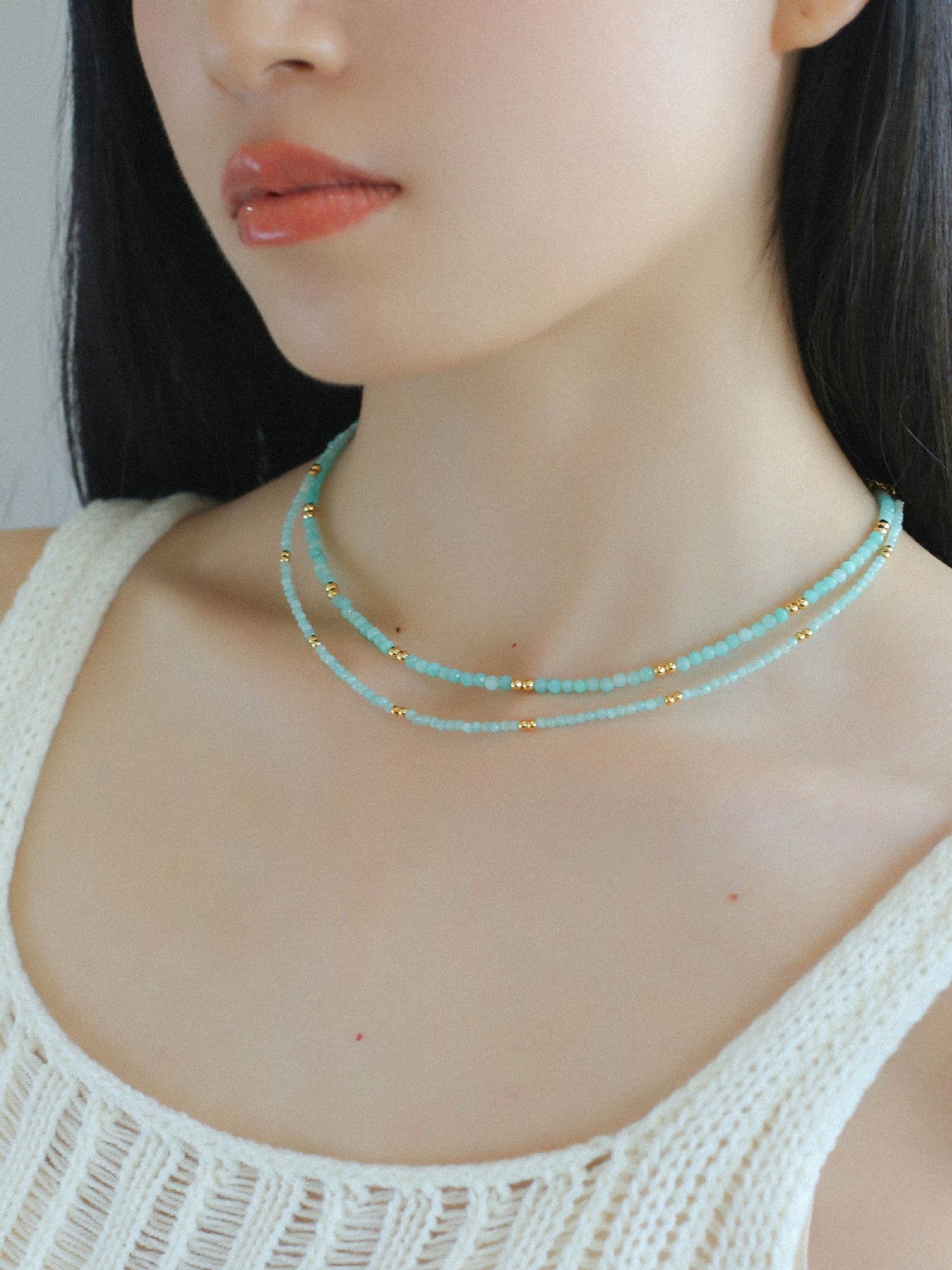 • Gemstone: Amazonite(2-2.5mm/3-3.5mm)