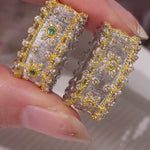 Brushed Dual - Tone North Star Wide Band Ring - floysun