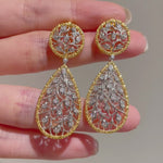 Dual-Wear Gold Silver Two-Tone Hollow Leaf Drop Earrings