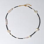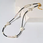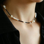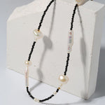 Black Spinel Toothpick Baroque Freshwater Pearl Clavicle Chain - floysun