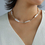 Broken Silver Toothpick Freshwater Pearl Necklaces - floysun