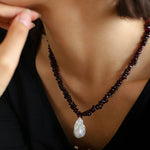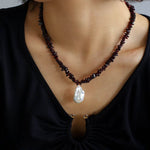Golden Radiance Baroque Pearl and Garnet Necklace - floysun