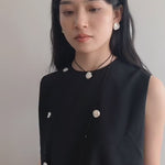 Nine Large Petal Baroque Pearls Black Spinel Necklace - floysun