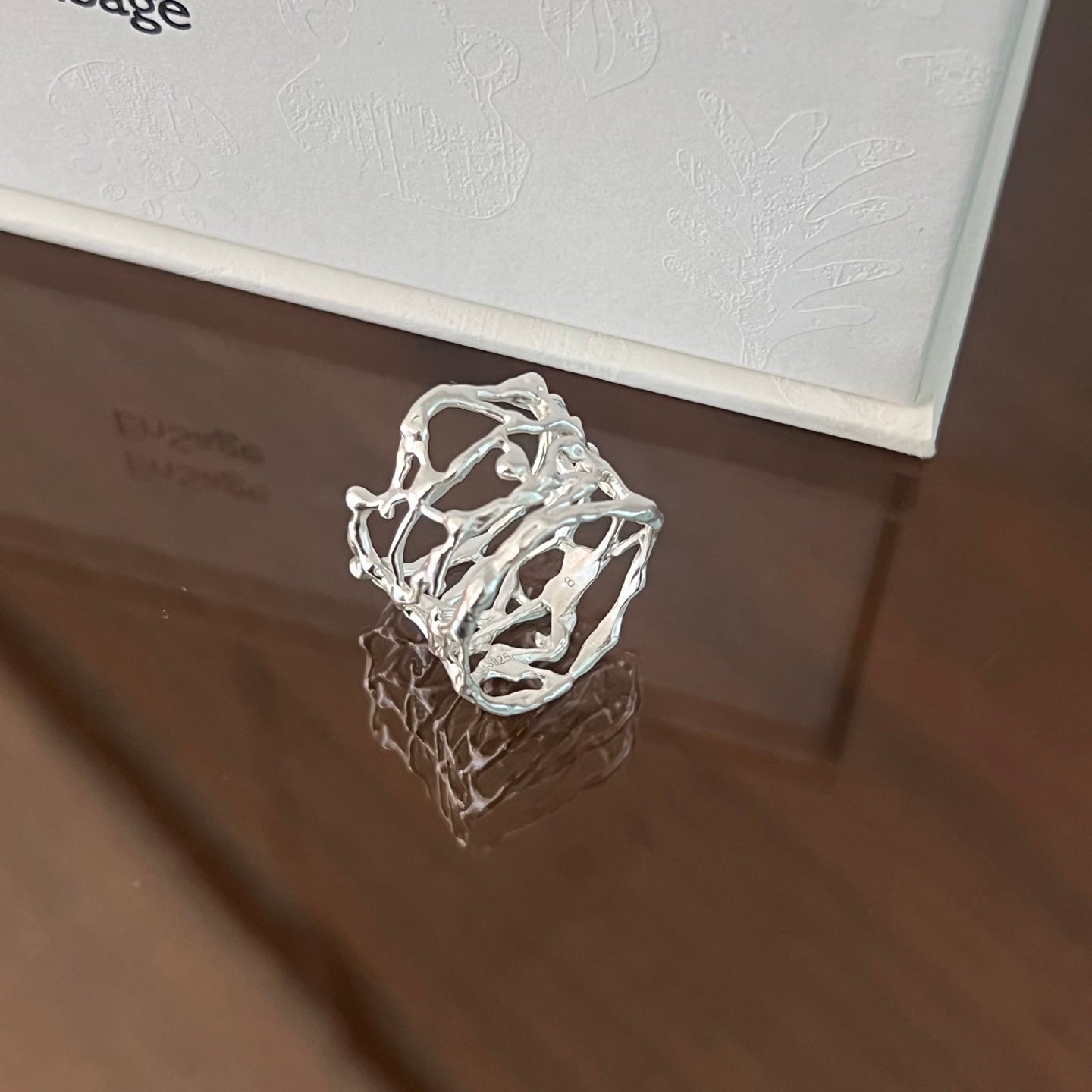 A poetic blend of craftsmanship and nature, this birdcage-inspired ring captures the quiet beauty of Korean boutique design. The openwork silver structure resembles a delicate cage, encasing shimmering blue turquoise and a soft-glowing natural moonstone — two stones loved for their calming, mystical charm.