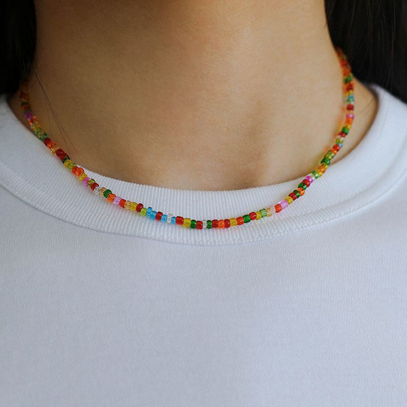 Elevate your style with our Colorful Beaded Pearl Necklace, a vibrant and sophisticated accessory that combines colorful beads and lustrous pearls for a playful yet classic look.
