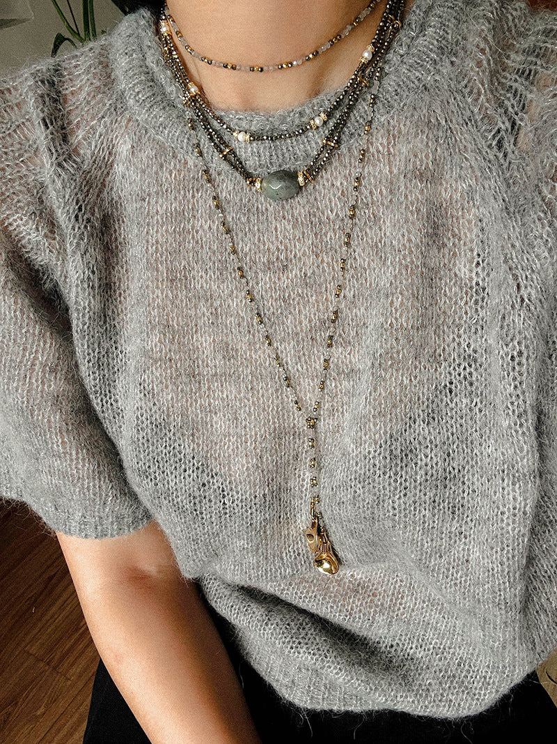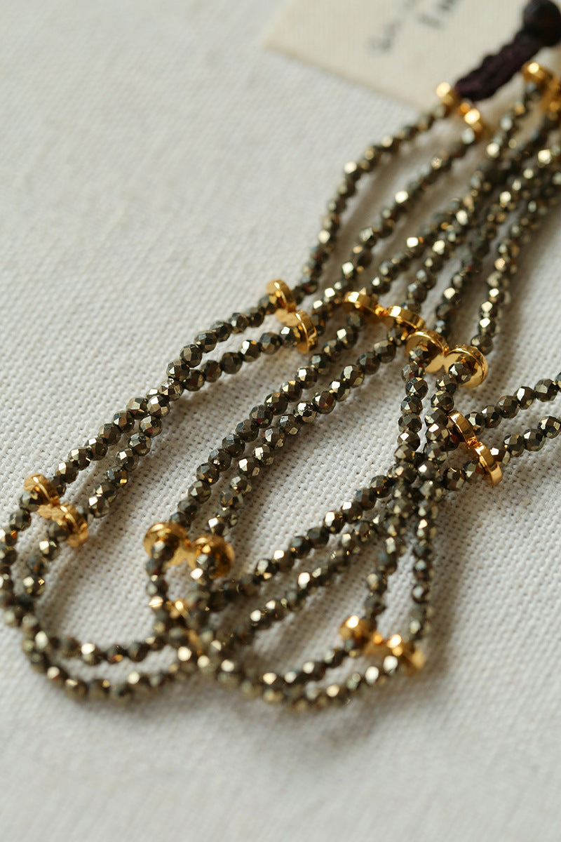 French Vintage Faceted Gemstone Double-Layer Gold Ore Necklace