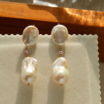 Introducing our "Pink Accent Baroque Pearl Trio Drop Earrings" — a harmonious fusion of elegance and charm. Each earring features a captivating trio of pearls, beginning with a flat round baroque pearl at the top, delicately accented by dainty pink freshwater pearls in the center. Below, a prominent fish tail-shaped baroque pearl gracefully hangs, adding a touch of sophistication to the design. These earrings exude a timeless allure, perfect for elevating any ensemble with a subtle hint of femininity and grace.