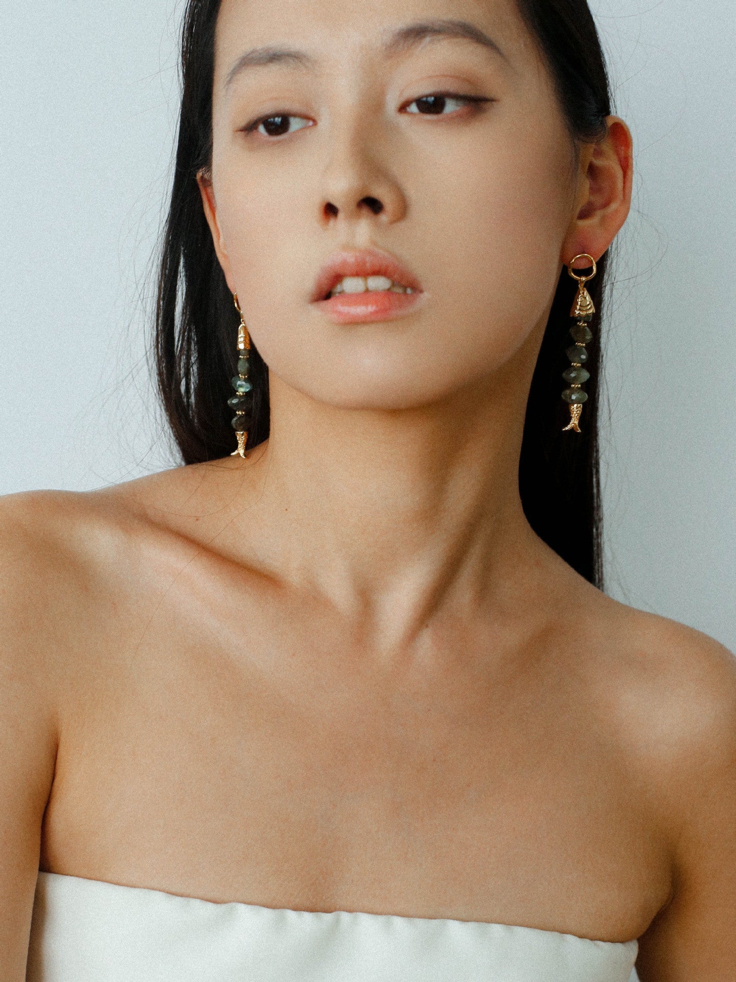 Moonlight Swimming Fish Earrings – Sparkling Stone / Aquamarine