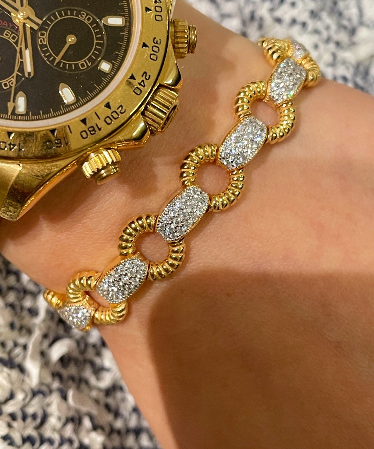 ヴィンテージ パヴェ ダイヤモンド オープン カフ ブレスレット – デュアルトーン ゴールド & シルバー