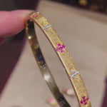 手作りのブラッシュドピンクサファイアクローバーバングル