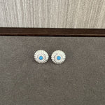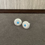 Minimalist Blue Turquoise Sterling Silver Floral Stud Earrings