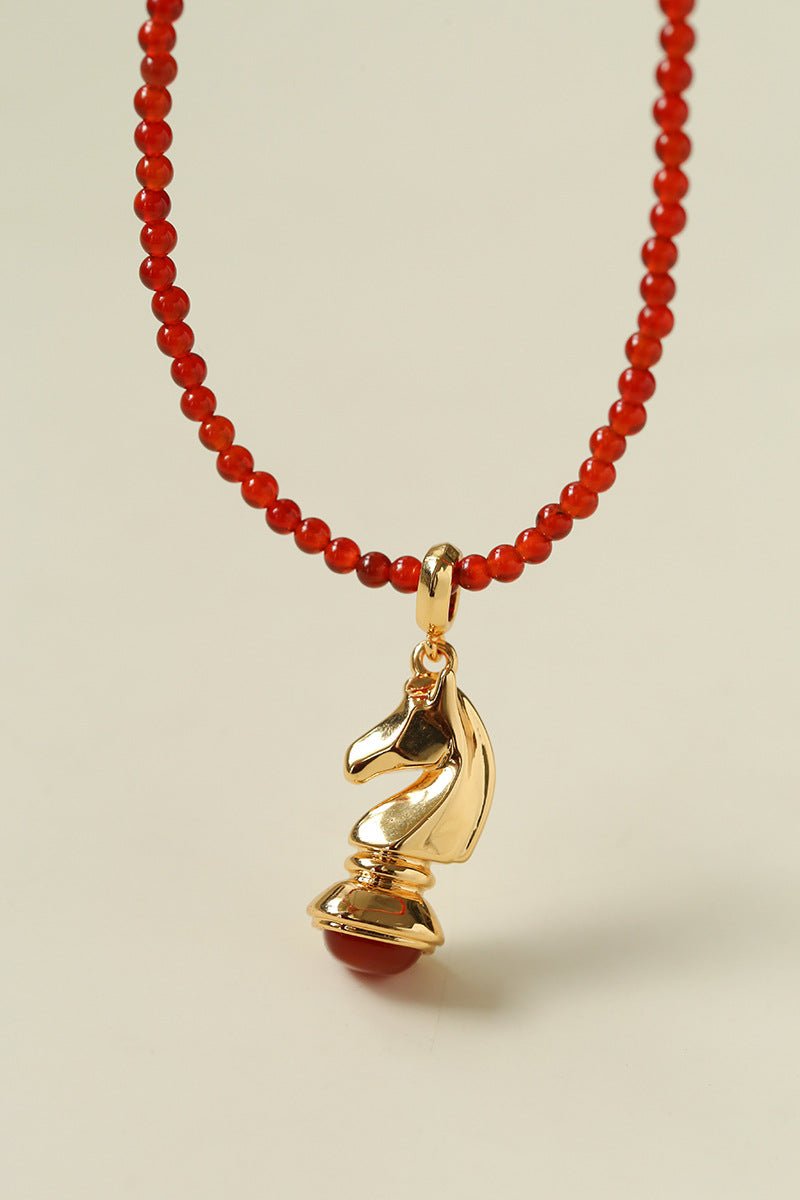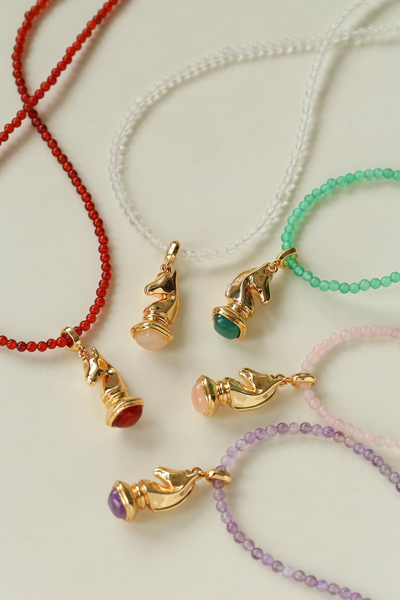 Knight Chess Horse Gemstone Beaded Necklace