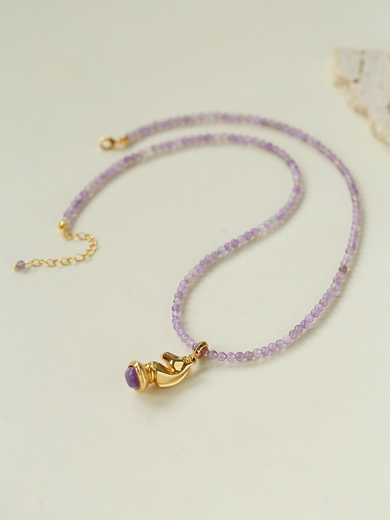 The necklace features color-matched natural gemstone beads, making it light, fresh, and perfect for spring and summer styling. Designed to sit elegantly along the collarbone, it looks refined worn alone and layered effortlessly with other pieces.