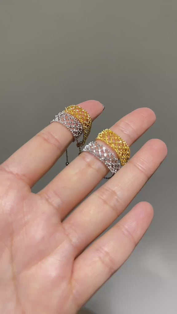 Inspired by the elegance of lace, this ring features a hollow openwork design that feels light, delicate, and refined. The intricate pattern catches the light beautifully, creating a soft, subtle glow. Understated yet elegant, it’s perfect for both everyday wear and special moments.